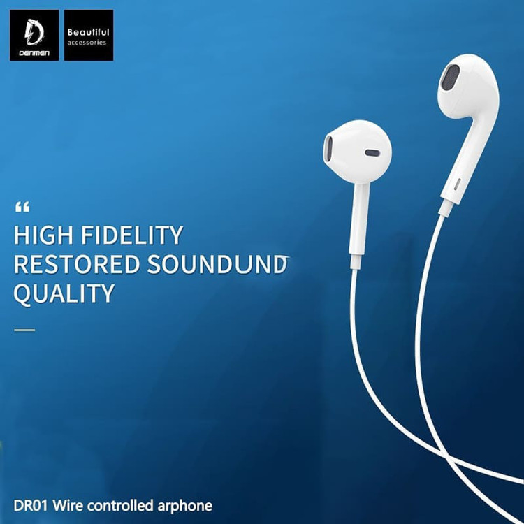 هندزفری «DR01» محصولی از شرکت «دنمن» است که از طریق جک 3.5 میلیمتری صدا به تلفنهمراه متصل میشود. این هندزفری طراحی بسیار سادهای دارد ولی صدای تولیدی آن بسیار با کیفیت است. هنگام گوش کردن به موسیقی توسط هندزفری دنمن مدل «DR01» شاهد بیس بسیار خوب در آن خواهیم بود. کابل این هندزفری دارای روکش پلاستیکی و با طول 1.2 متر است که مقدار بسیار مناسبی به شمار میرود. روی گوشیهای این محصول سرگوشیهای اپلی تعبیه شده است که دارای ارگونومی مناسب هستند. این سرگوشیها باعث میشوند که هندزفری به خوبی در گوش قرار گیرد. همچنین از نشر صدا به محیط بیرون جلوگیری میکنند. شرکت دنمن یک پنل شامل کلید و میکروفن روی کابل «DR01» تعبیه کرده است. به کمک میکروفن و کلید تعبیه شده میتوان به تماسهای تلفنی پاسخ داد. هندزفری «DR01» وزن بسیار کمی دارد و هنگام قرارگیری روی گوش باعث ایجاد مزاحمت نمیشود.