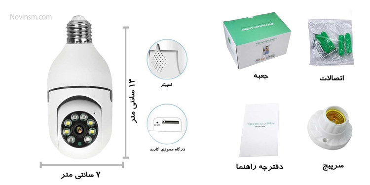 دوربین لامپی چرخشی 1.3MP به راحتی و از طریق تنظیمات نرم افزار درونی خود می تواند به مودم وای فای شما متصل شده و از طریق مودم شما به اینترنت اتصال خواهد یافت و تمامی تصاویر را بر روی گوشی موبایل خود می توانید مشاهده نمایید.